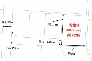 約70坪のゆとりある敷地は、平屋や広めの駐車スペース、