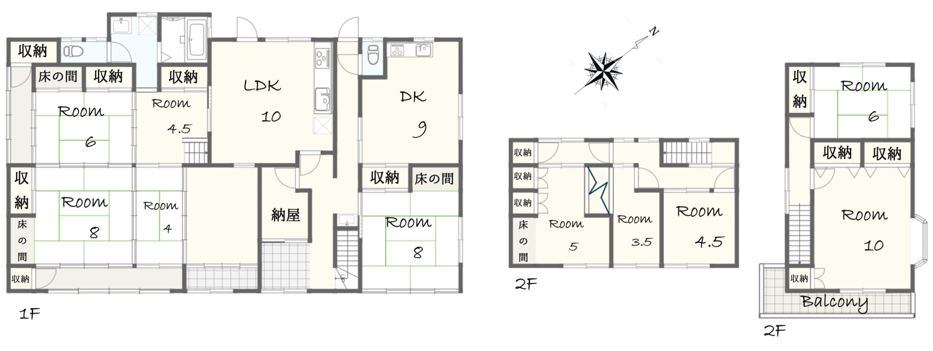 □10LDDKKの間取りと各所に収納がある安心